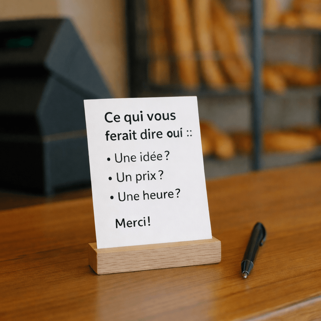 Carton 10×15 cm à poser : "Ce qui vous ferait dire oui” :